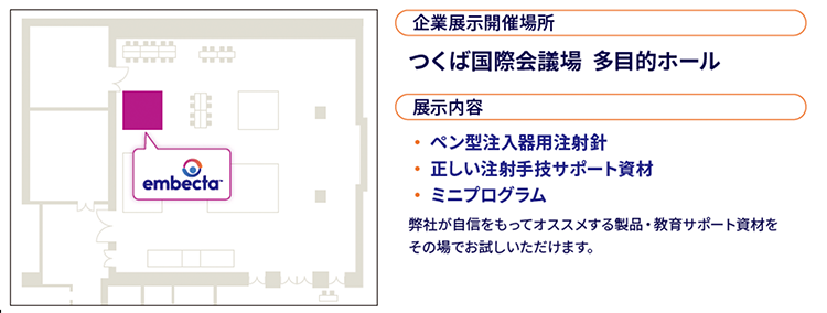 展示ブースにてミニプログラム開催 | 正しい注射手技に関するポイントや新たな知見を、デモンストレーションも交えてお伝えします。